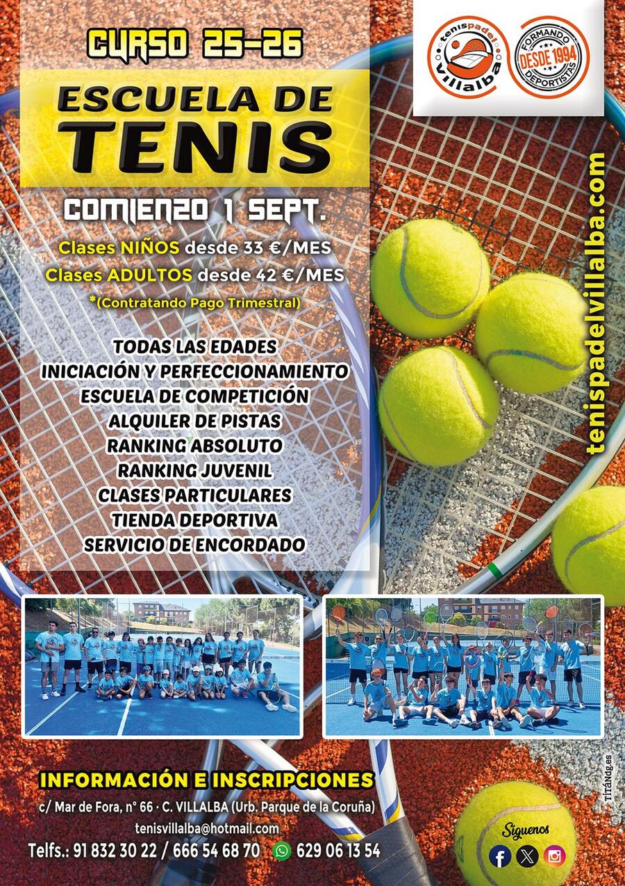Nuestra escuela de tenis ofrece clases personalizadas, tanto grupales como individuales, para todos los niveles. Disponemos de horarios flexibles para adaptarnos a tus necesidades y ayudarte a alcanzar tus objetivos en la pista. Además, podrás unirte a nuestro ranking de tenis, participar en equipos juveniles y veteranos, y disfrutar de emocionantes torneos internos.